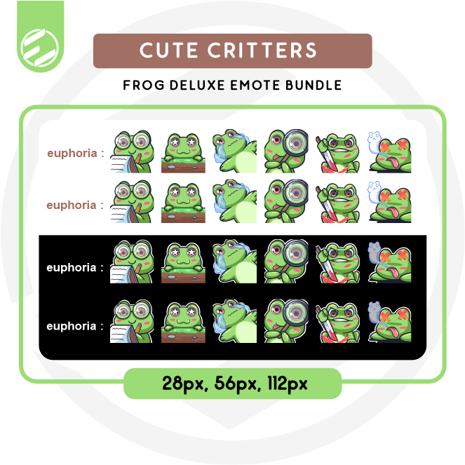 Unleash a bubbly dose of cuteness into your streams, Discord chats, and online realms with this must-have emote bundle! Featuring 6 hilariously expressive emotes of the charming amphibian, Freddy the Frog, this pack is designed to bring a unique and unforgettable flair to your online presence.