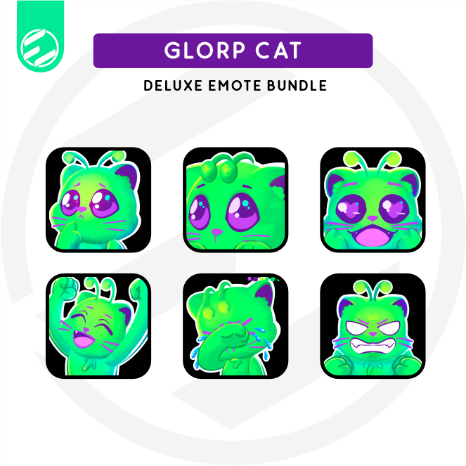 What’s included: 6 unique Glorp Cat emotes from this alien cat emote pack covering a full range of expressions your chat will actually use.