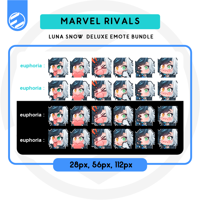 • 6 Unique Emotes: A set of 6 custom, high-quality emotes of Luna Snow in various moods and expressions.