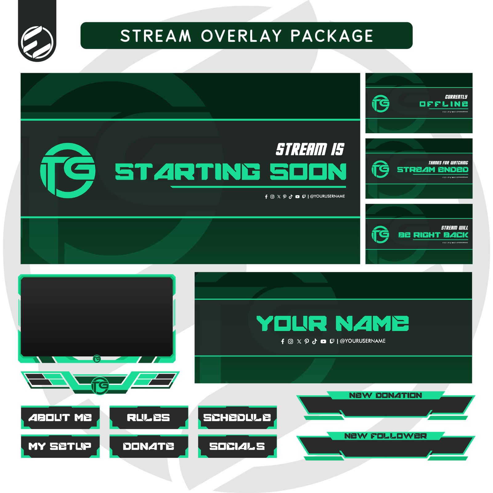 This comprehensive package contains high-resolution, easy-to-use PNG files (with transparent backgrounds) for every stream element: